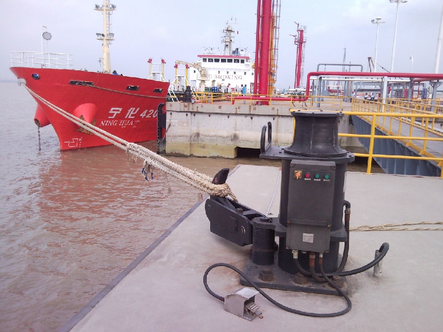 绞缆机是一种安装于码头面上,用于船舶绞缆的专用设备。该设备与系缆桩配合使用,可以减轻工人的劳动强度、提供工作效率、增加安全性和可靠性,广泛用于油品、化工品、集装箱、散杂货等码头。绞缆机主要有立式和卧式两种。